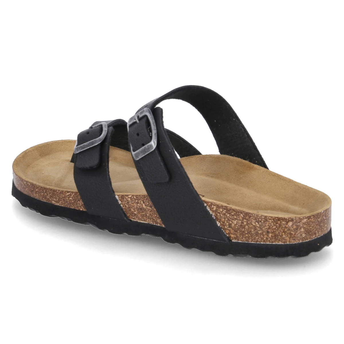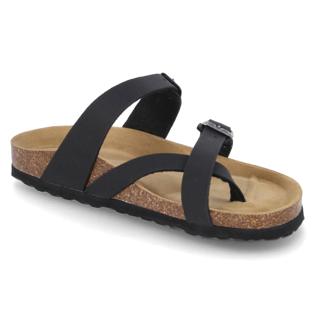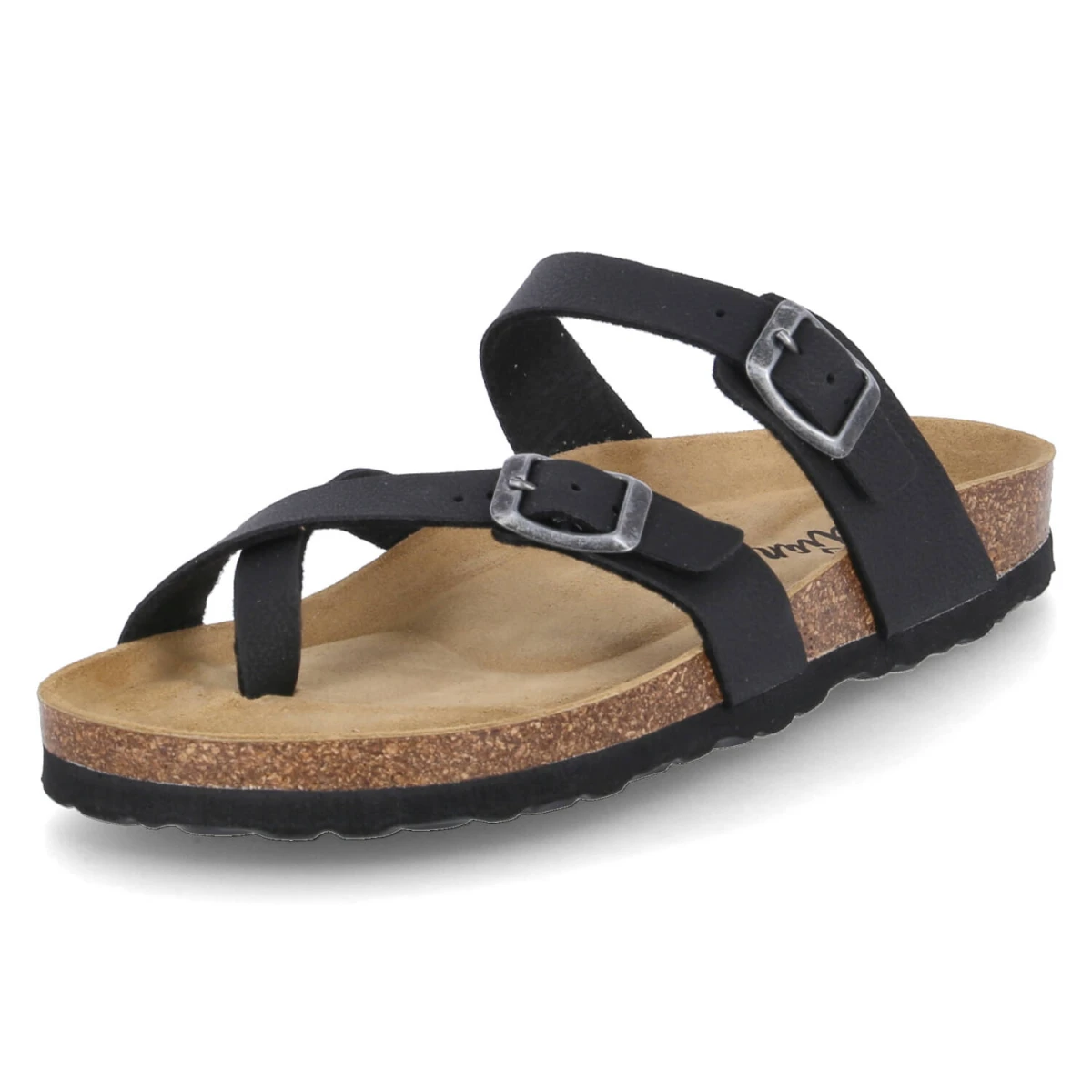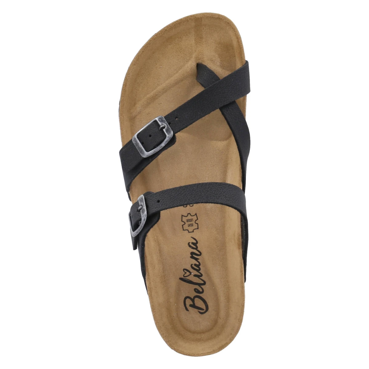 Der elegante Zehentrenner von Beliana zeigt, wie stilvoll Schlichtheit sein kann. Die glatte, schwarze Oberfläche aus pflegeleichtem Kunstleder ergänzt sowohl cleane City-Outfits als auch entspannte Urlaubs-Looks. Die verstellbare Schnalle erlaubt eine exakte Anpassung, während der offene Zehenbereich für sommerliche Leichtigkeit steht. Ein vorgeformtes, weiches Kork‑Tieffußbett mit Lederbezug umschmeichelt den Fuß und bietet langanhaltenden Tragekomfort. Die leichte EVA‑Sohle mit dezentem Profil schenkt Trittsicherheit und Flexibilität. Durch die reduzierten Linien sind die Kombinationsmöglichkeiten nahezu unbegrenzt, von Culottes bis Satinkleid. Modetipp: In Kombination mit einer fließenden Wide-Leg-Hose und einem gerippten Tank entsteht ein moderner, urbaner Look; dazu eine Box-Bag und schmale Sonnenbrille wählen.