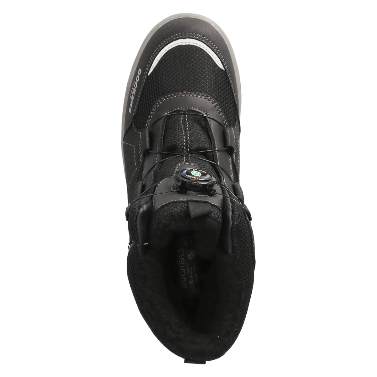 Ideal für Schulweg, Spielplatz und Winterausflüge: Die Dockers Kinder-Winterstiefeletten in Schwarz kombinieren eine wasserfeste, atmungsaktive TEX-Membran mit warmem Textilfutter für verlässlichen Wetterschutz. Das Obermaterial aus Textil und Synthetik ist strapazierfähig, die runde Spitze komfortabel und das weich gepolsterte Fußbett unterstützt den ganzen Tag. Ein gepolsterter Schaftrand sowie die Anziehlasche erhöhen den Tragekomfort, während die flexible Laufsohle griffig abrollt. Highlight ist der sichere Drehverschluss, der die Weite schnell und exakt fixiert; reflektierende Details verbessern die Sichtbarkeit in der Dämmerung. Dezente Markenlogos runden den Look ab, der Größenhinweis lautet: fällt normal aus. Modetipp: Mit Thermojeans, grob gestricktem Cardigan und einer farbintensiven Pufferjacke entsteht ein funktionaler, urbaner Winterstyle.