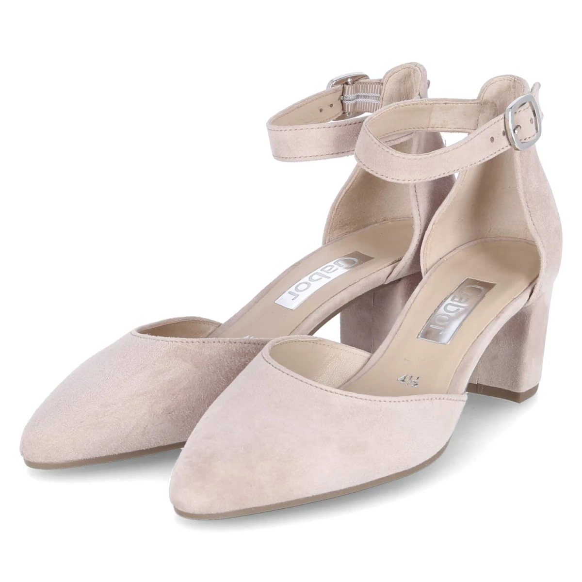 Dieser Spangenpump von Gabor kombiniert klaren Chic mit Komfort. Die samtige Oberfläche des hochwertigen Rauleders verleiht Tiefe, während die spitze Kappe und das D’Orsay-Design eine schlanke Kontur formen. Der ca. 6 cm hohe Blockabsatz sorgt für Trittsicherheit ohne Kompromisse in der Eleganz. Innen umschließt weiches Lederfutter den Fuß, die gepolsterte Lederdecksohle federt Schritte dezent ab. Der Knöchelriemen mit elastischem Einsatz passt sich an und die rutschhemmende Sohle gibt verlässlichen Grip. In Rosa lässt sich der Pump vielseitig kombinieren - von Feinstrick bis Hosenanzug. Modetipp: Zu einem monochromen Look in Rosétönen wirkt das Modell modern, mit Denim erhält es eine lässige Note.