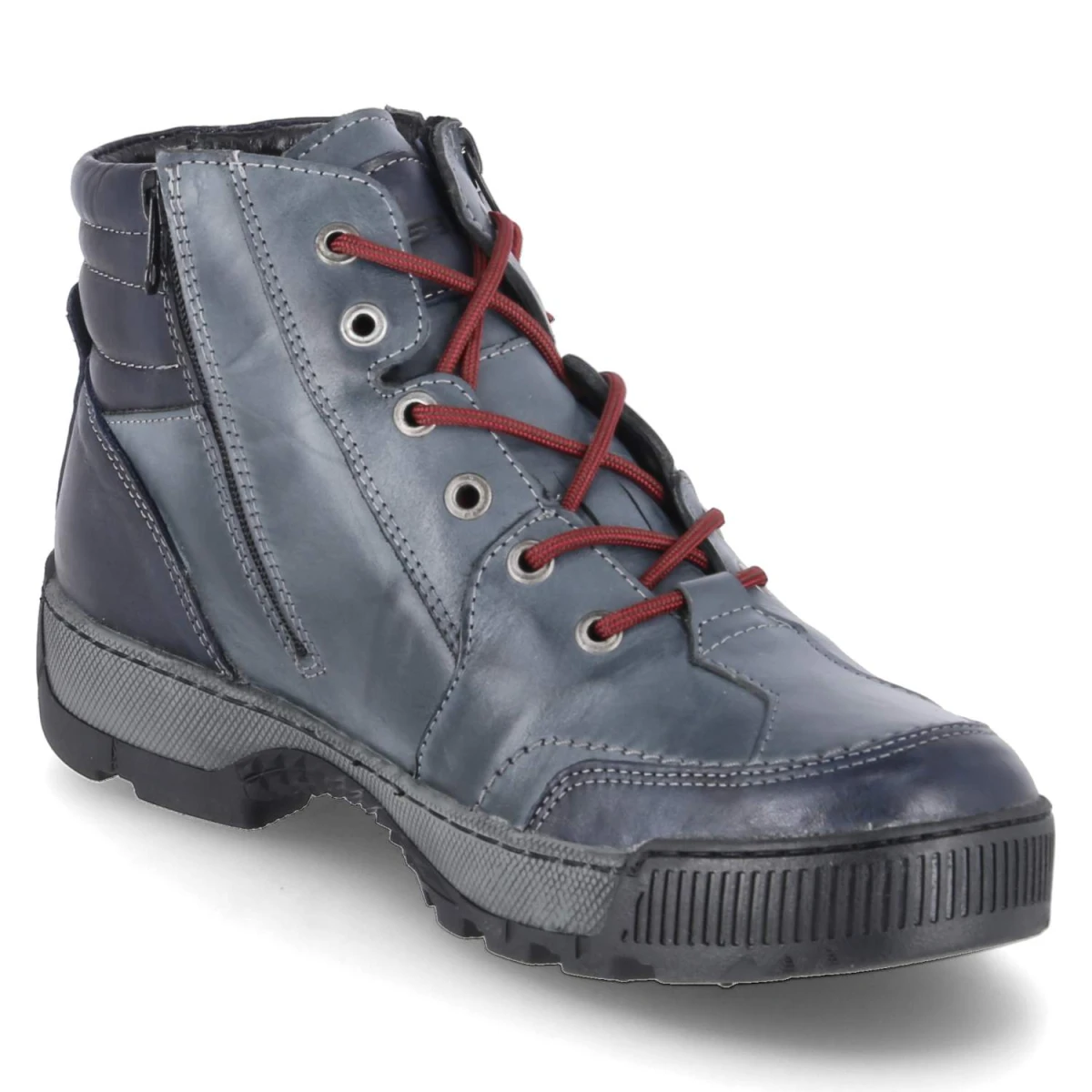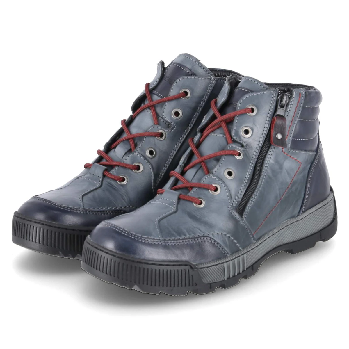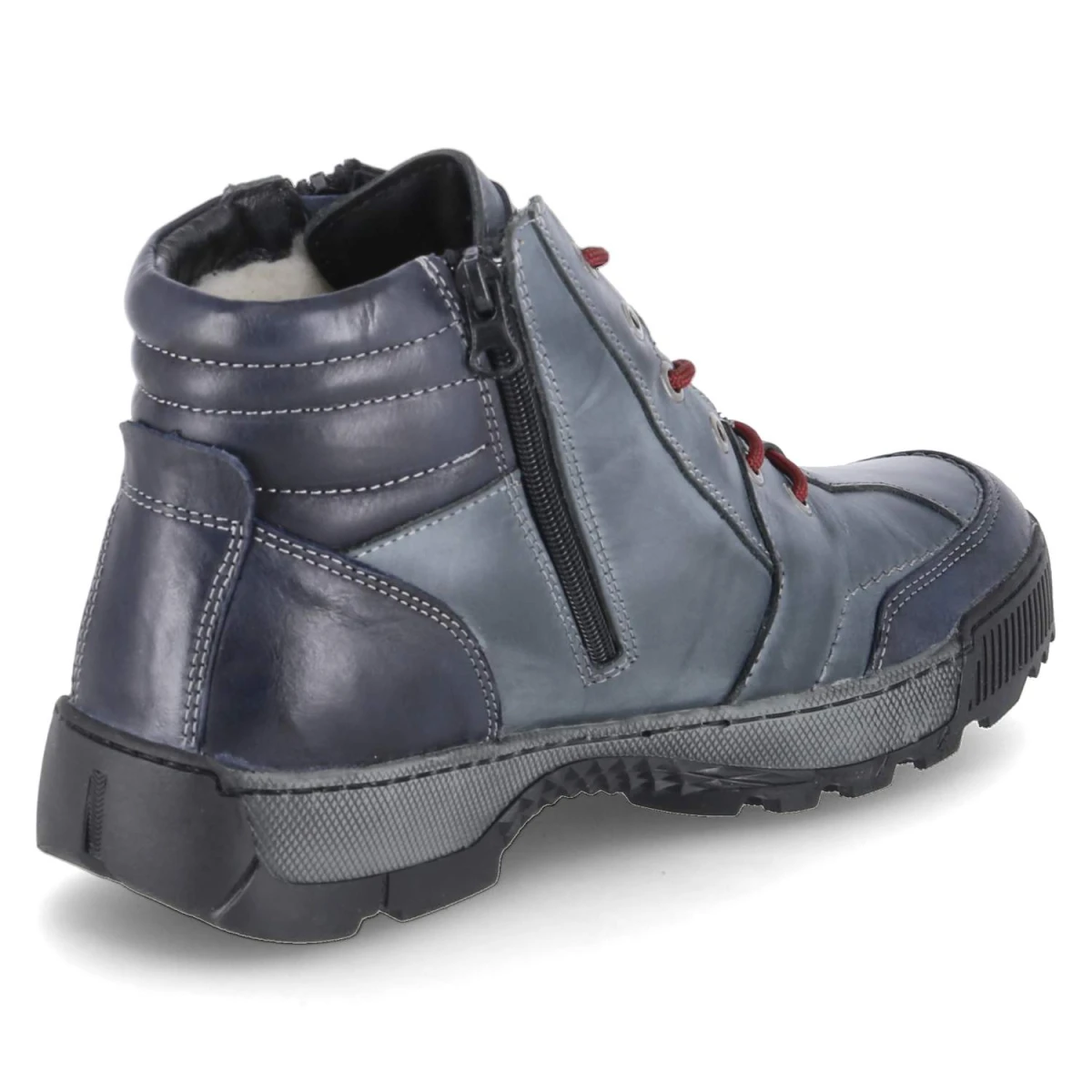 Als zuverlässiger Begleiter durch die kalte Jahreszeit von Krisbut überzeugt dieses Herrenmodell mit Obermaterial aus hochwertigem Glattleder und einer kernigen, blauen Used-Optik. Das Warmfutter umschließt den Fuß wohlig, die textile Decksohle und das weich gepolsterte Fußbett dämpfen jeden Schritt. Funktionale Details wie die sportliche Zehen- und Fersenkappe und eine flexible Profilsohle sorgen für Stabilität und Grip. Schnürsenkel garantieren eine individuelle Anpassung, der seitliche Reißverschluss ermöglicht schnelles An- und Ausziehen. Seitliche Prägungen setzen dezente Akzente, die Passform fällt normal aus. Modetipp: Besonders stimmig zu Cargo-Hose, grobem Strickpullover und einem Kurzparka in Erdtönen.