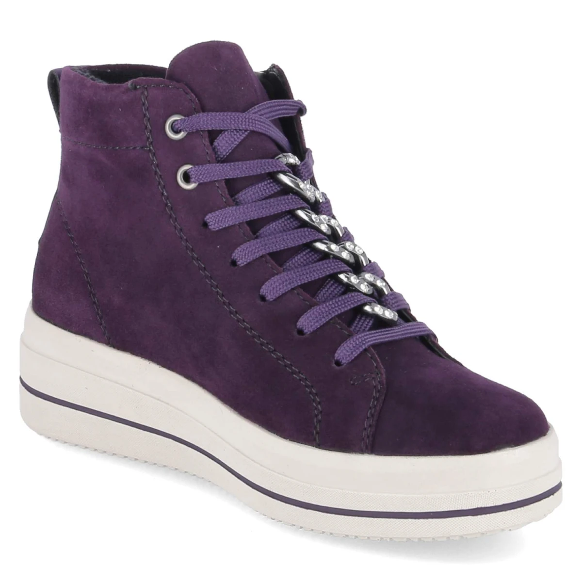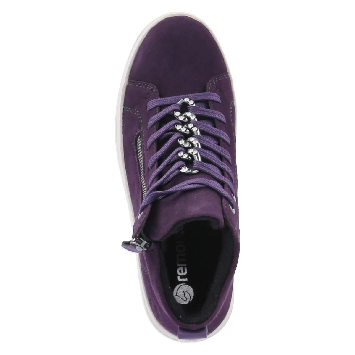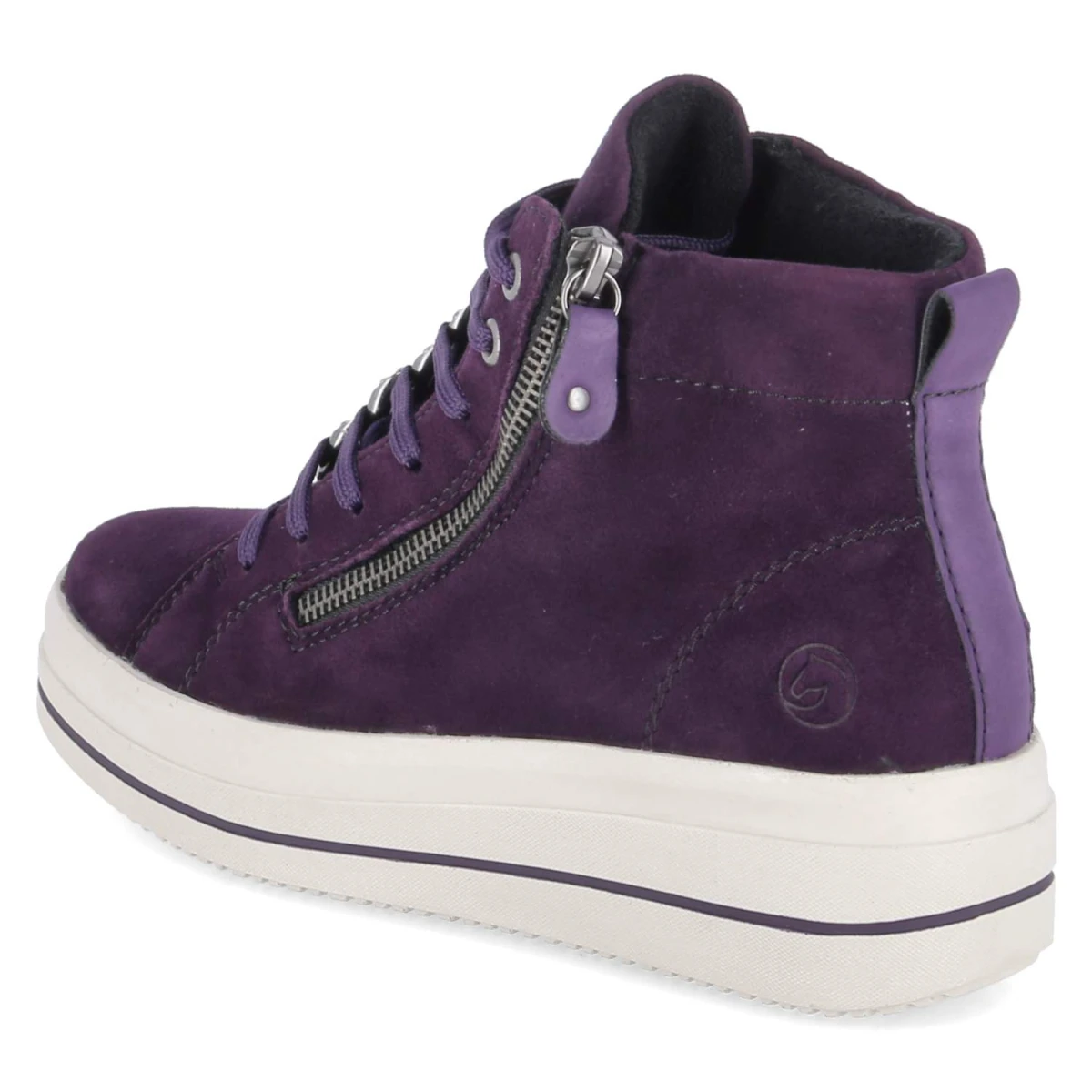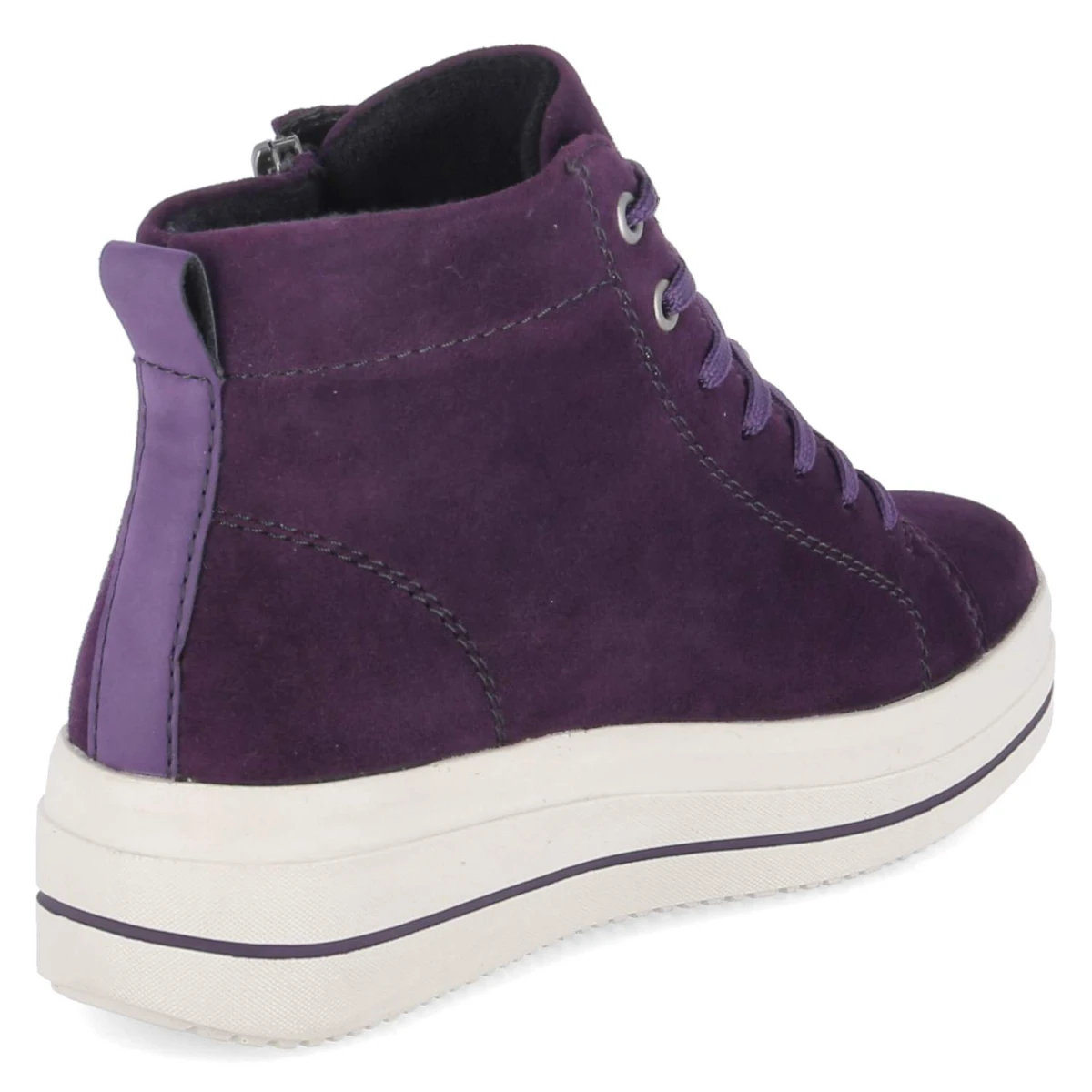 Urbaner Winterlook leicht gemacht: LIZ HURLEY von Remonte zeigt sich in ausdrucksstarkem Lila und überzeugt durch funktionale Details. Das weiche Rauleder mit samtigem Griff umspielt den Fuß, der runde Zehenbereich und der gepolsterte Schaftrand erhöhen die Bequemlichkeit. Innen wärmt ein leichtes Fleecefutter, die textile Decksohle liegt als komfortables Wechselfußbett eingelegt und kann bei Bedarf ausgetauscht werden. Für schnellen Einstieg sorgt der zusätzliche Reißverschluss neben der Schnürung; die verstärkte Ferse mit Anziehlasche unterstützt sicheren Halt. Eine flexible, rutschhemmende Copsohle begleitet souverän durch nasse Straßen. Fällt normal aus. Modetipp: Mit Wide-Leg-Jeans, Cropped-Puffer und glitzernden Accessoires wird der Stiefel zum City-Highlight.