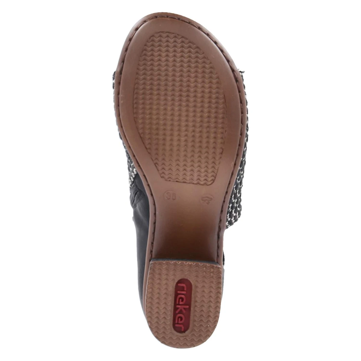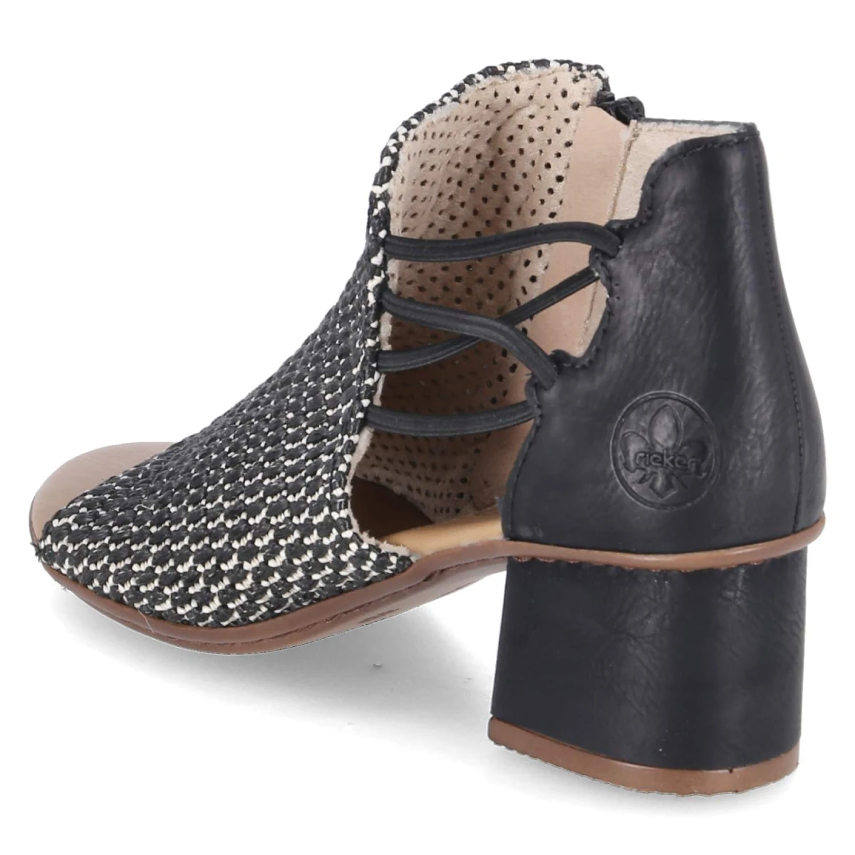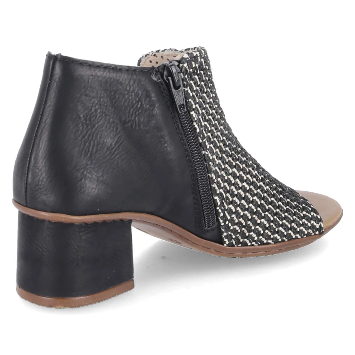Die Rieker Sandaletten zeigen, wie alltagstaugliche Eleganz funktioniert: Ein stabiler Blockabsatz mit 5,5 cm sorgt für sicheren Stand, der geflochtene Schaft verleiht Struktur und Tiefe. Dank offen gearbeiteter Spitze bleibt das Tragegefühl angenehm luftig, das gepolsterte Fußbett unterstützt bei längeren Wegen. Das pflegeleichte Synthetik-Obermaterial und die Decksohle bewahren ihre Form und lassen sich mühelos reinigen. Reißverschluss und seitliche Elastikbänder bieten ein komfortables An- und Ausziehen sowie guten Halt. In zeitlosem Schwarz lassen sich die Schuhe vielseitig kombinieren, die Passform fällt normal aus. Ein verlässlicher Begleiter vom Meeting bis zum Dinner. Modetipp: Mit Midikleid in Printoptik und schmalem Taillengürtel kommt der Blockabsatz besonders zur Geltung, dazu harmoniert eine Korbtasche für einen entspannten City-Chic.
